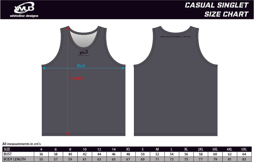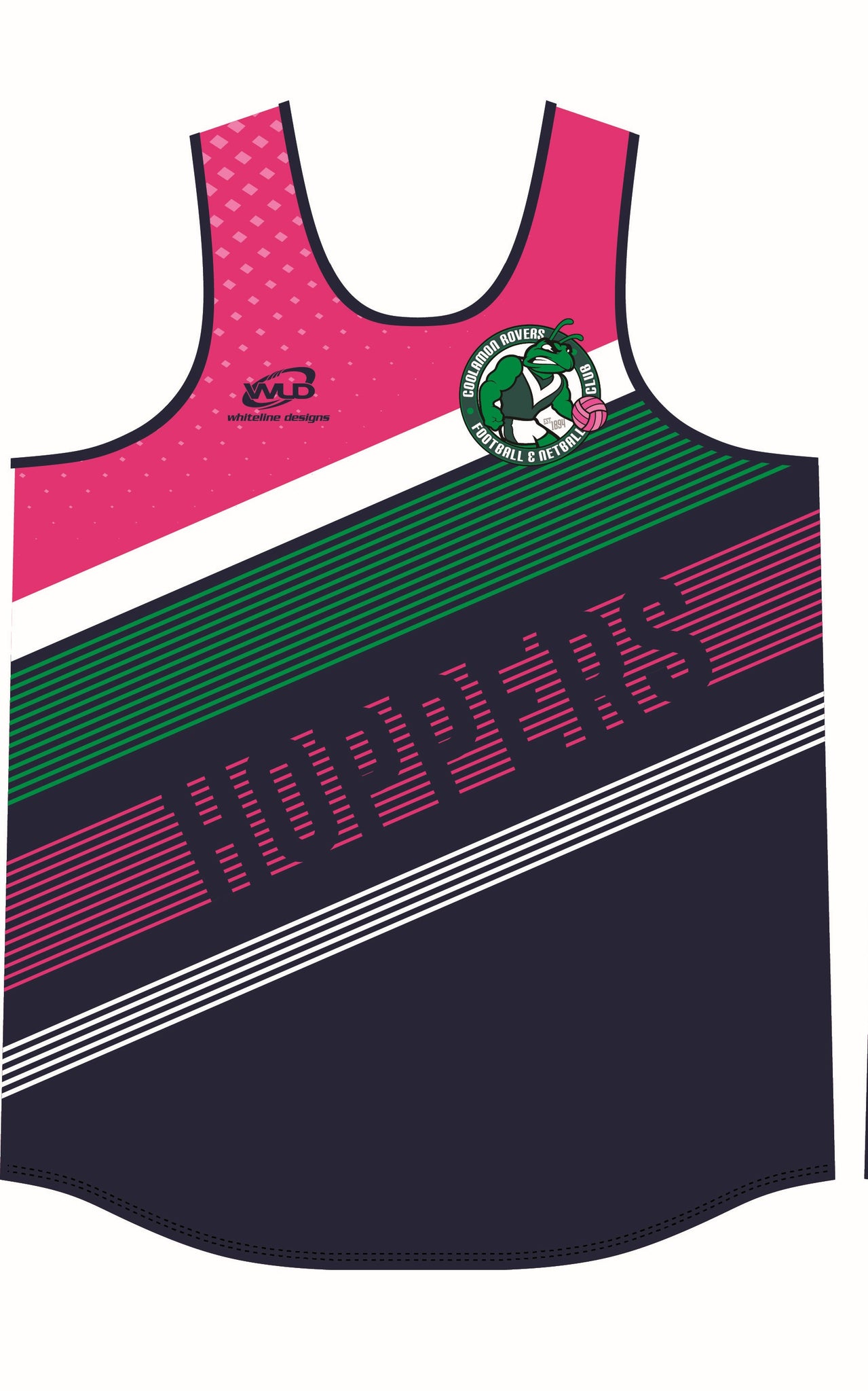 Items: Available with either T-Shirt or Singlet, Football or Netball CRFNC logo with background design.